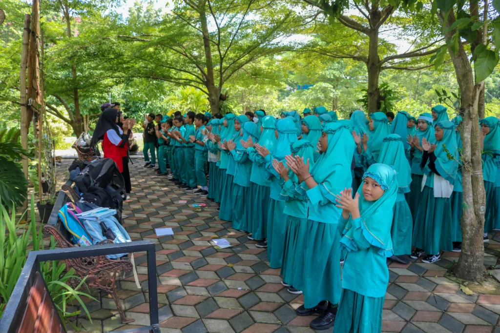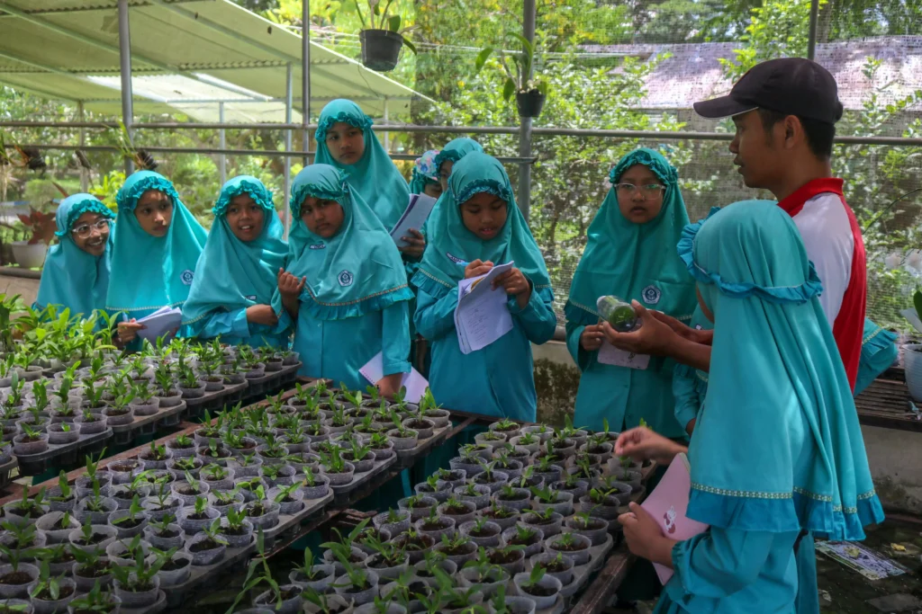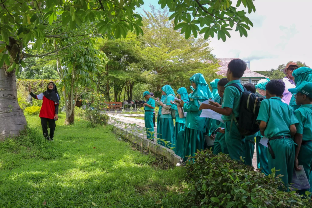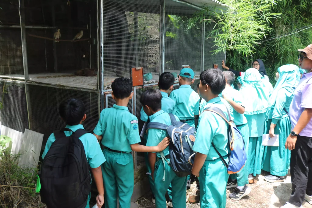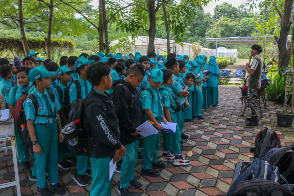 Tak hanya sayuran, siswa juga mengeksplorasi area taman untuk melihat pohon Baobab dan bunga sepatu, mempelajari budidaya anggrek, serta melihat proses pengolahan limbah organik menjadi pupuk kompos. Antusiasme siswa kian terlihat saat berinteraksi dengan satwa yang ada, seperti tupai, iguana, ayam hutan, dan berbagai jenis burung.