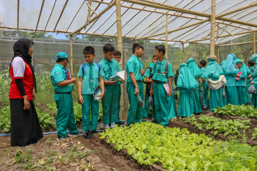 Rangkaian kegiatan ditutup dengan praktik langsung menanam sayuran. Para siswa diajarkan cara menanam bibit pakcoy ke dalam polybag sebagai bekal ilmu pertanian sederhana yang bisa mereka terapkan di rumah.