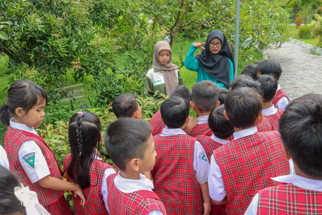 Siswa juga diajak mengenal tanaman unik lainnya, seperti jeruk sambal, membedakan tekstur kaktus yang berduri dengan sukulen yang aman disentuh, hingga tanaman lavender pengusir nyamuk. Tak ketinggalan, mereka melihat satwa yang ada dan mendapatkan ilmu teknis tentang cara melakukan sambung pucuk (grafting) pada bunga kertas bougenvil.