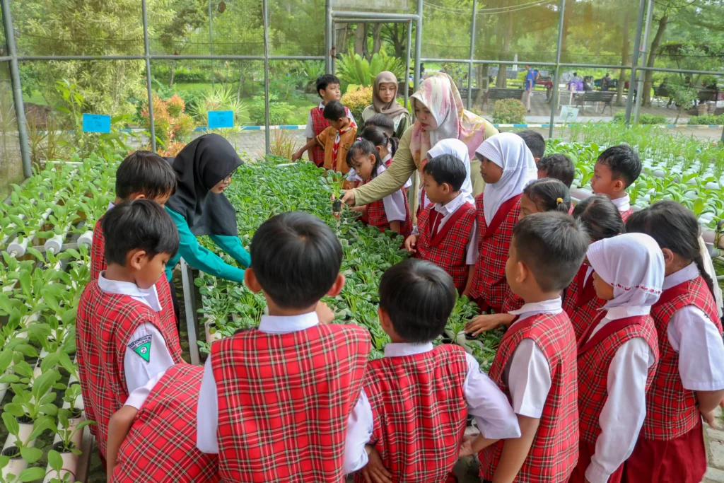 Dalam sesi keliling kebun, siswa mendapatkan banyak wawasan baru. Di area buah, mereka melihat pohon kelengkeng dan jambu kristal. Kunjungan berlanjut ke greenhouse anggrek untuk belajar budidaya, serta greenhouse sayuran konvensional di mana siswa dikenalkan dengan istilah “bedengan” dan cara menyemai benih dan tak lupa juga ke greenhouse sayuran hidroponik.